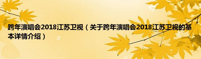 本文关于跨年演唱会2018江苏卫视的基本详情介绍就讲解完毕,希望对大家有所帮助。