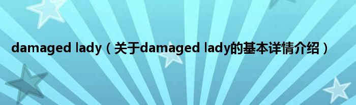本文关于damaged lady的基本详情介绍就讲解完毕,希望对大家有所帮助。
