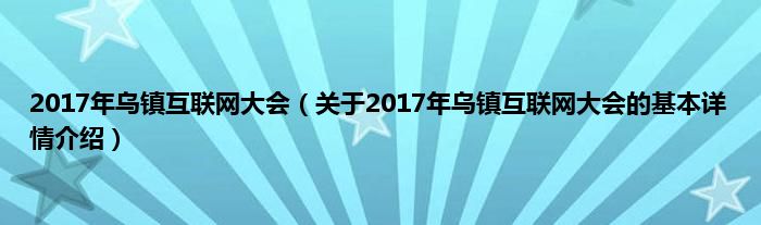 本文关于2017年乌镇互联网大会的基本详情介绍就讲解完毕,希望对大家有所帮助。