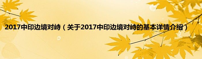 本文关于2017中印边境对峙的基本详情介绍就讲解完毕,希望对大家有所帮助。