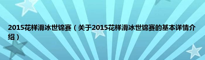本文关于2015花样滑冰世锦赛的基本详情介绍就讲解完毕,希望对大家有所帮助。