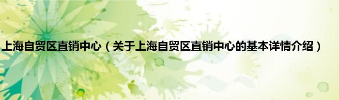 本文关于上海自贸区直销中心的基本详情介绍就讲解完毕,希望对大家有所帮助。