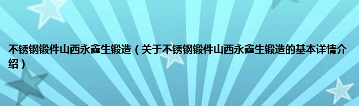不锈钢锻件山西永鑫生锻造(关于不锈钢锻件山西永鑫生锻造的基本详情介绍)