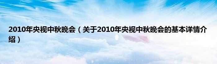 本文关于2010年央视中秋晚会的基本详情介绍就讲解完毕,希望对大家有所帮助。