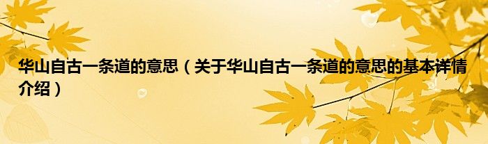 本文关于华山自古一条道的意思的基本详情介绍就讲解完毕,希望对大家有所帮助。