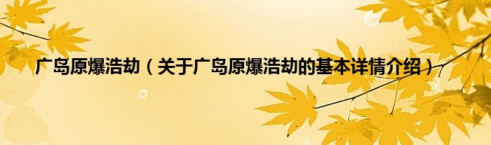 本文关于广岛原爆浩劫的基本详情介绍就讲解完毕,希望对大家有所帮助。