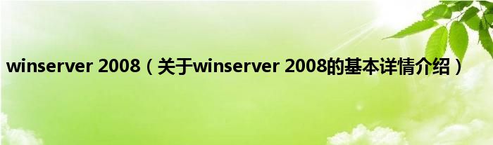本文关于winserver 2008的基本详情介绍就讲解完毕,希望对大家有所帮助。
