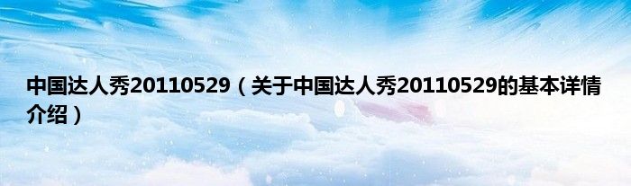 本文关于中国达人秀20110529的基本详情介绍就讲解完毕,希望对大家有所帮助。