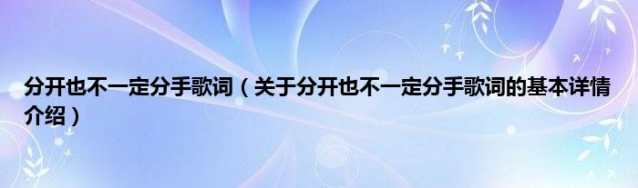 本文关于分开也不一定分手歌词的基本详情介绍就讲解完毕,希望对大家有所帮助。