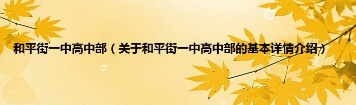 本文关于和平街一中高中部的基本详情介绍就讲解完毕,希望对大家有所帮助。