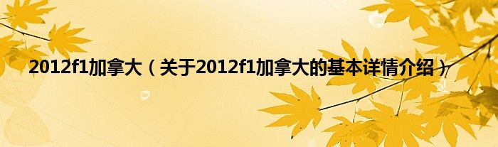 本文关于2012f1加拿大的基本详情介绍就讲解完毕,希望对大家有所帮助。