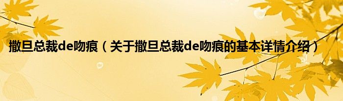本文关于撒旦总裁de吻痕的基本详情介绍就讲解完毕,希望对大家有所帮助。