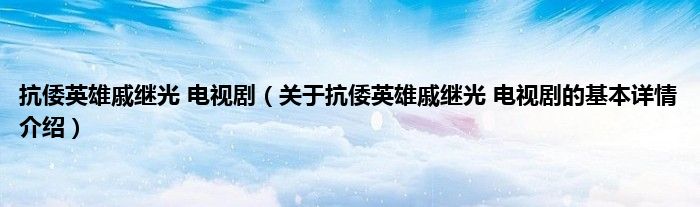 本文关于抗倭英雄戚继光 电视剧的基本详情介绍就讲解完毕,希望对大家有所帮助。