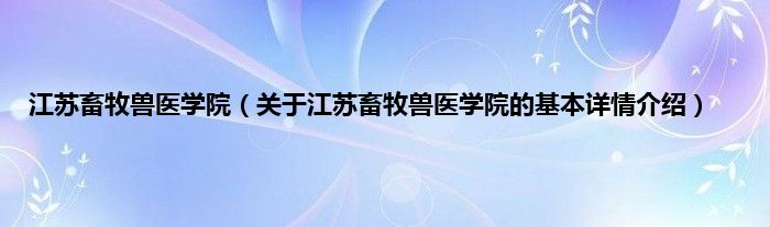 本文关于江苏畜牧兽医学院的基本详情介绍就讲解完毕,希望对大家有所帮助。