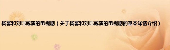 本文关于杨幂和刘恺威演的电视剧的基本详情介绍就讲解完毕,希望对大家有所帮助。