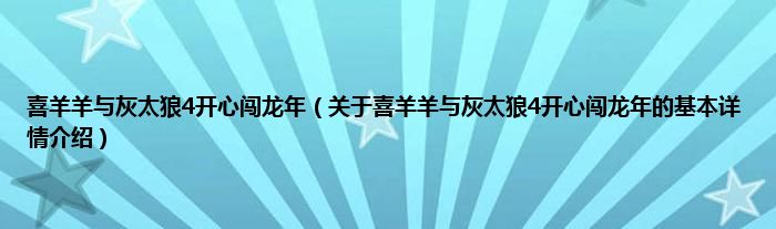 本文关于喜羊羊与灰太狼4开心闯龙年的基本详情介绍就讲解完毕,希望对大家有所帮助。
