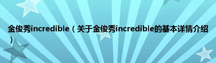 金俊秀incredible(关于金俊秀incredible的基本详情介绍)