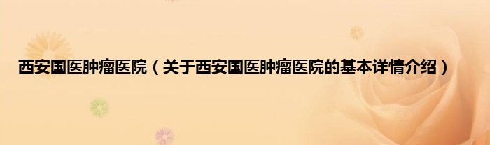本文关于西安国医肿瘤医院的基本详情介绍就讲解完毕,希望对大家有所帮助。