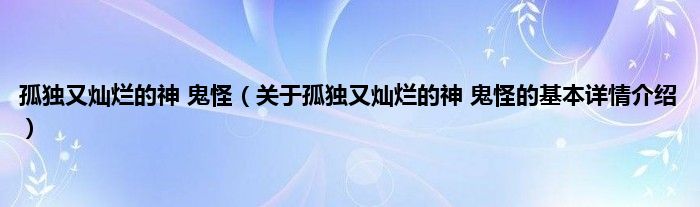 本文关于孤独又灿烂的神 鬼怪的基本详情介绍就讲解完毕,希望对大家有所帮助。