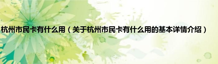 本文关于杭州市民卡有什么用的基本详情介绍就讲解完毕,希望对大家有所帮助。