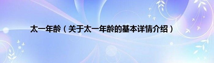 大家好我是小蝌蚪,太一年龄,关于太一年龄的基本详情介绍很多人还不知道,那么现在让我们一起来看看吧!