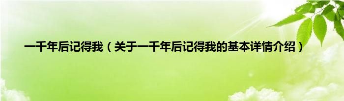 本文关于一千年后记得我的基本详情介绍就讲解完毕,希望对大家有所帮助。