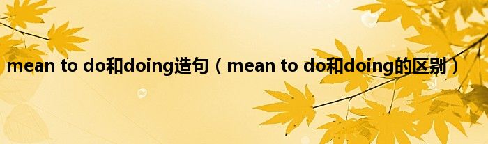 以上就是【mean to do和doing造句,mean to do和doing的区别】相关内容。