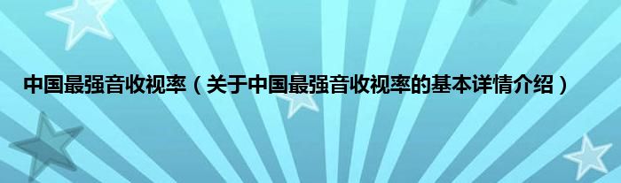 本文关于中国最强音收视率的基本详情介绍就讲解完毕,希望对大家有所帮助。