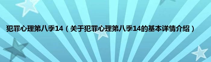 本文关于犯罪心理第八季14的基本详情介绍就讲解完毕,希望对大家有所帮助。