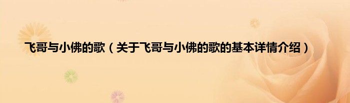 本文关于飞哥与小佛的歌的基本详情介绍就讲解完毕,希望对大家有所帮助。
