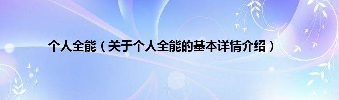 本文关于个人全能的基本详情介绍就讲解完毕,希望对大家有所帮助。