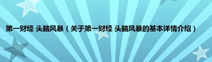 第一财经 头脑风暴(关于第一财经 头脑风暴的基本详情介绍)