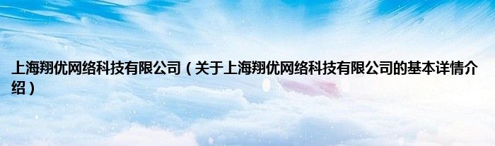 本文关于上海翔优网络科技有限公司的基本详情介绍就讲解完毕,希望对大家有所帮助。