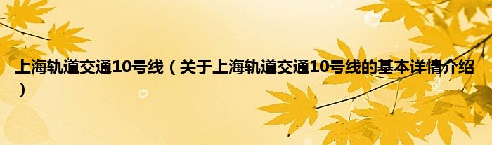 上海轨道交通10号线(关于上海轨道交通10号线的基本详情介绍)