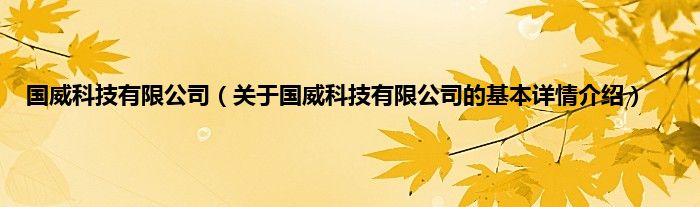 本文关于国威科技有限公司的基本详情介绍就讲解完毕,希望对大家有所帮助。