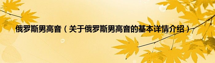 本文关于俄罗斯男高音的基本详情介绍就讲解完毕,希望对大家有所帮助。