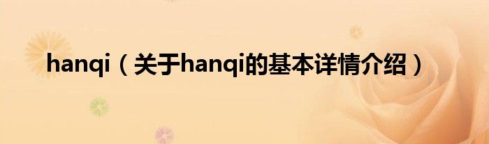 本文关于hanqi的基本详情介绍就讲解完毕,希望对大家有所帮助。
