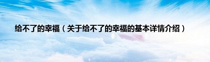 本文关于给不了的幸福的基本详情介绍就讲解完毕,希望对大家有所帮助。