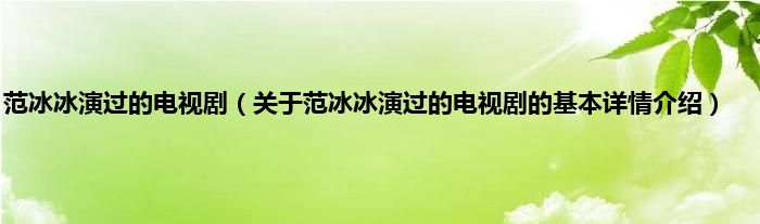 本文关于范冰冰演过的电视剧的基本详情介绍就讲解完毕,希望对大家有所帮助。