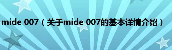 mide 007(关于mide 007的基本详情介绍)