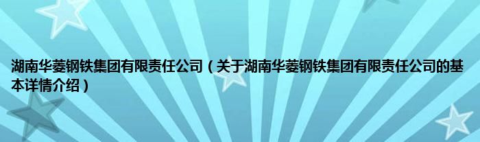 本文关于湖南华菱钢铁集团有限责任公司的基本详情介绍就讲解完毕,希望对大家有所帮助。
