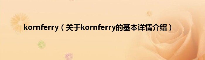 本文关于kornferry的基本详情介绍就讲解完毕,希望对大家有所帮助。
