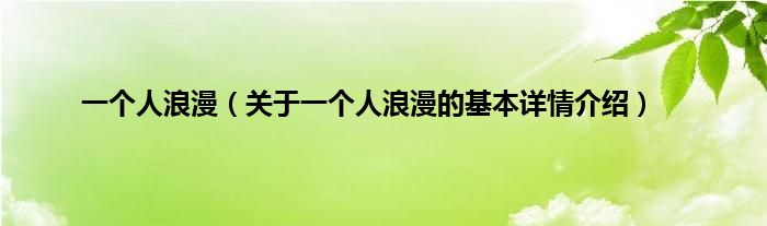 本文关于一个人浪漫的基本详情介绍就讲解完毕,希望对大家有所帮助。
