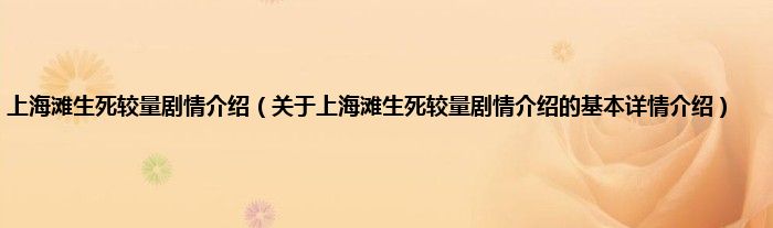 本文关于上海滩生死较量剧情介绍的基本详情介绍就讲解完毕,希望对大家有所帮助。
