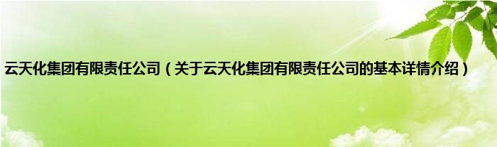 本文关于云天化集团有限责任公司的基本详情介绍就讲解完毕,希望对大家有所帮助。