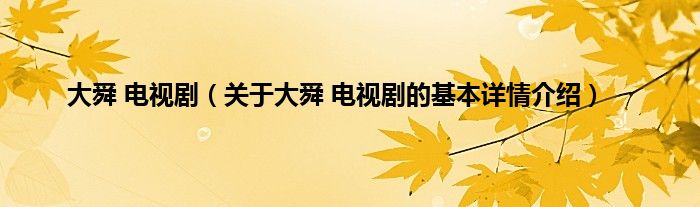 本文关于大舜 电视剧的基本详情介绍就讲解完毕,希望对大家有所帮助。