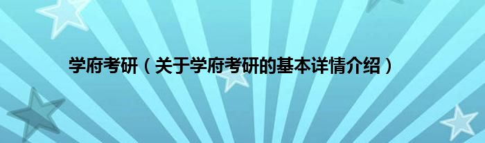 本文关于学府考研的基本详情介绍就讲解完毕,希望对大家有所帮助。