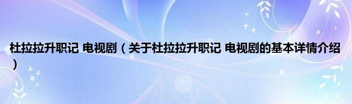 杜拉拉升职记 电视剧(关于杜拉拉升职记 电视剧的基本详情介绍)