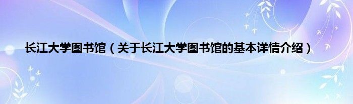 本文关于长江大学图书馆的基本详情介绍就讲解完毕,希望对大家有所帮助。