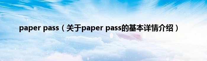 本文关于paper pass的基本详情介绍就讲解完毕,希望对大家有所帮助。